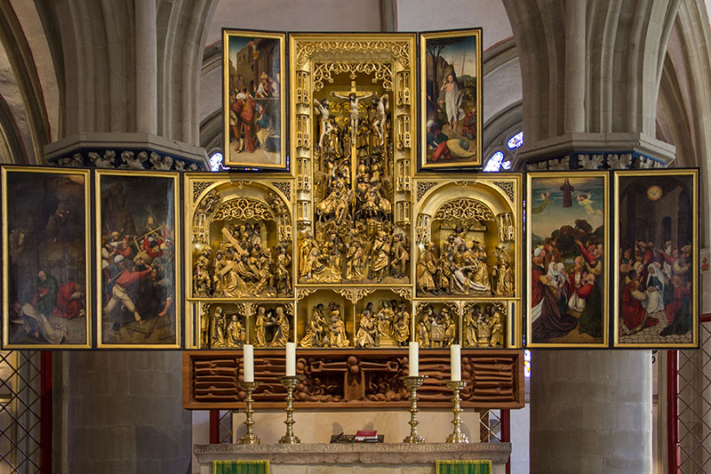 die Friedensstadt. Hier im spätgotischen Rathaus (erbaut 1487-1512) wurde am 25. Okt. 1648 nach 30 Jahren Krieg der Frieden verkündet.