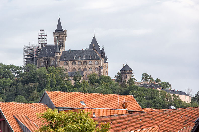 Das Schoß Wernigerode (12. Jh.) auf dem 400 m hohem Agnesberg ist im Familienbesitz der Grafen zu Stollberg Wernigerode.